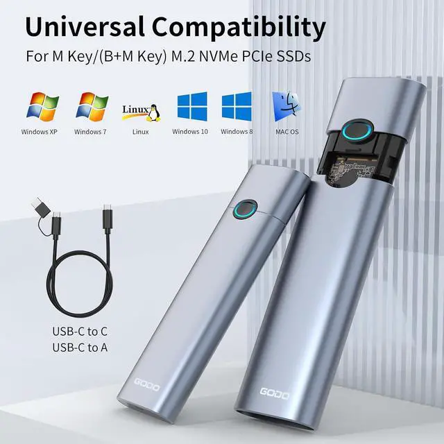 Broad CompatibilityThe M.2 NVMe enclosure is applicable for Windows, Mac OS, Linux, Android, IOS systems.