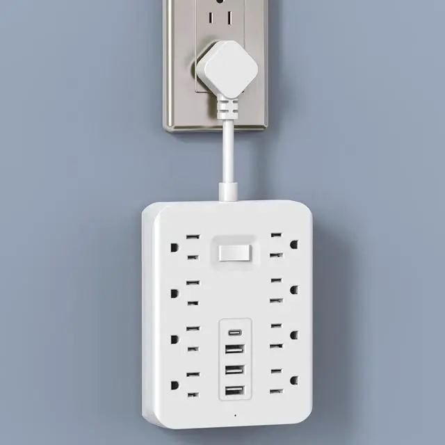 Title: EL-24 12-in-1 Power Strip 8 Outlets + 4 USB Ports. Braided Cord. TikTok Viral TEMU Top Seller.