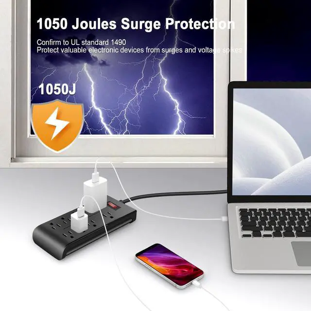 • Flat Plug & Space-Saving Design Right-angle flat plug (1.2m/4ft cable, customizable length available) fits easily behind furniture no wasted space. Mounting slots on back for wall or under-desk installation. Black finish hides dirt and wear.