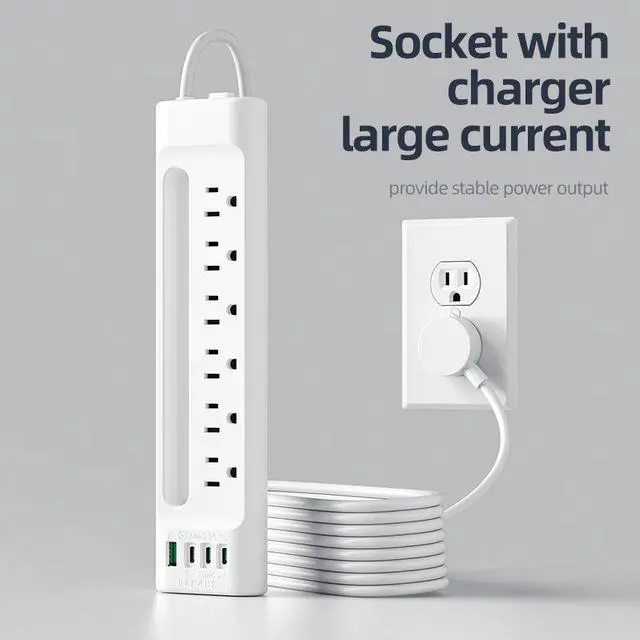 The NN-28 Power Strip delivers reliable power where you need it most. With 6 AC outlets, 4 USB ports (1 USB-A + 3 Type-C), an extra long 3m flat plug cable, overload protection switch, and pure copper conductors, this power strip is perfect for rooms where outlets are hard to reach.
