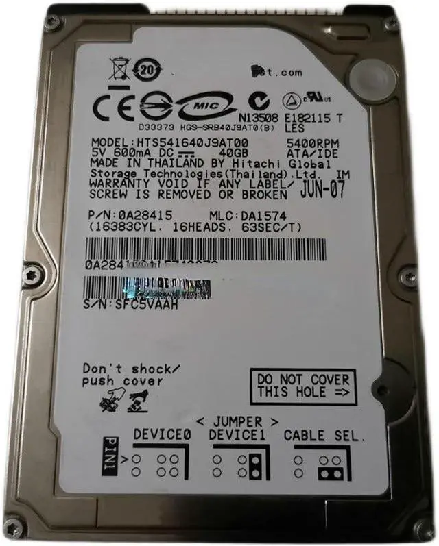 For Hitachi HTS541640J9AT00 40G 5.4K 2.5 parallel port/IDE hard disk