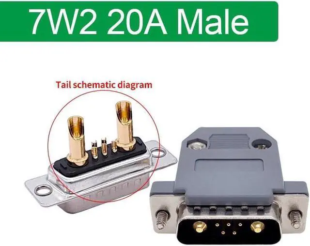 • 1PCS 7W2 20A 30A 40A Gold plated high current Connector D-SUB adapter 5+2 plug jack Machined Pin Full Gold Flash Wire(20A Male and shell)