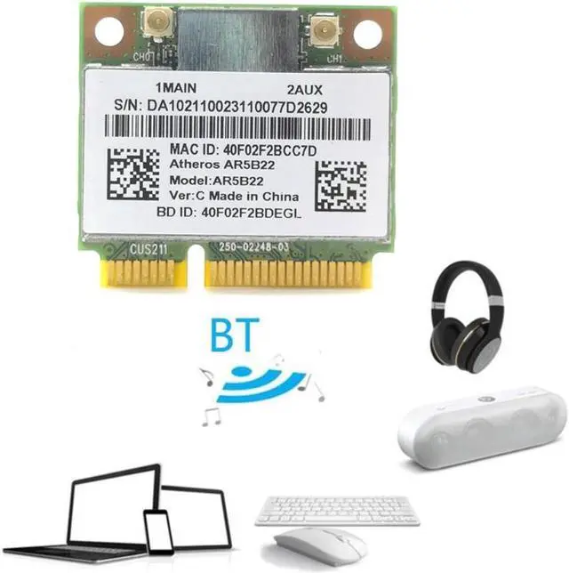 AR5B22 WiFi Card, Dual Band 2.4G /5Ghz 300Mbps Bluetooth-compatible 4.0 Mini PCI-E Wireless Network Card for Laptops