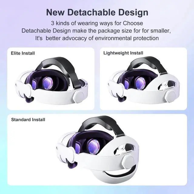 New Detachable Design ---3 kinds of wearing ways for Choose, Detachable Design make the package size for for smaller, It's better advocacy of environmental protection. Lightweight and Portabl the vr accessories for oculus quest3S/3 weighs only 6.9 oz, Package include 1 x elite headstrap, 1 x user manual