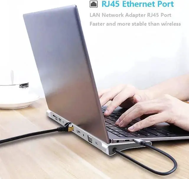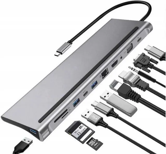 * 11 in 1 multifunctional dock hubs: multiport USB-C adapter with 1 x HDMI, 1xPD, 1x VGA output, 3x USB 3.0 port, 1x SD/TF, 2x USB Type C, PD (power delivery); 1x RJ45 for 100mbps Ethernet; 1x 3.5 mm audio on your personal computer.