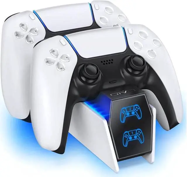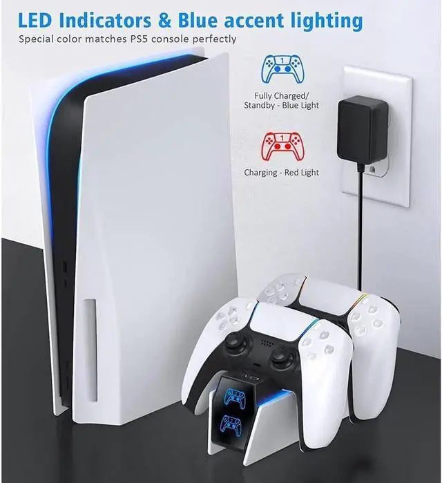 EASY TO USE --- Just connect the dock with PS5 console, and place two controllers on the ps5 charger cradle, the charging port on dock is firm and keeps the ps5 controller securely seated. (Prompt: Make sure the light of PS5 console turns to white from blue before charging, which means the PS5 console is in working status)