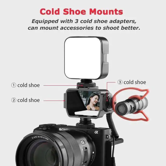 Designed for mirrorless cameras --- This flip screen solves the problem that the screen of mirrorless camera cannot be flipped when shooting VLOG, allowing for better and more accurate vlog video shooting and live video streaming.