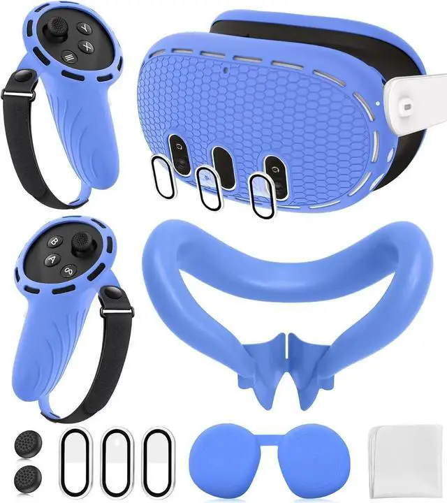 Compatible with Meta Quest 3 Accessories: Incleuded 1x VR Silicone Face Cover, 1x VR Headset Shell Cover, 2 x Controller Grip Cover, 3 x Lens Tempered Glass Protector, 1x Lens Camera Protector, 2x Joysticks Cover, 1 x Cleaning cloth. Ensuring full protection for your Oculus Quest 3.