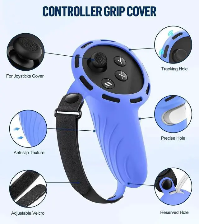 Controller Grip Cover: Accurate cutouts and holes design ensure that the signal can enter the controller normally. Adjustable hand straps fit various hand sizes, making your VR gaming experience even more enjoyable.