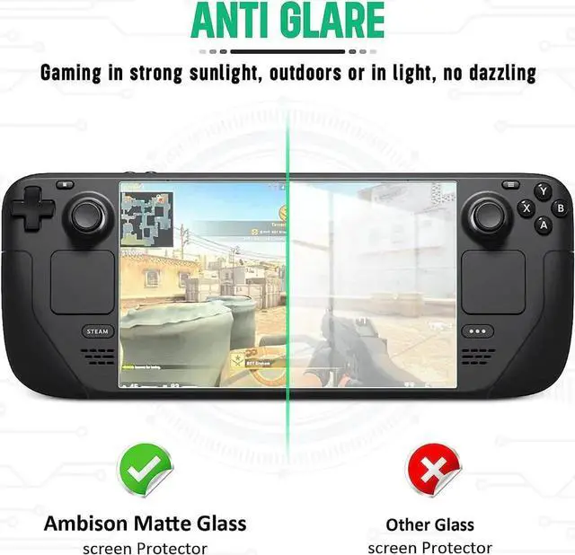 Anti Glare: Steam Deck premium matte anti-glare etched glass screen protector, with matte on surface, anti glare function to suppress light reflection, gaming in strong sunlight, outdoors or in light, is not dazzling, bring you a better game experience. Surface oleophobic coating to reduce fingerprints.