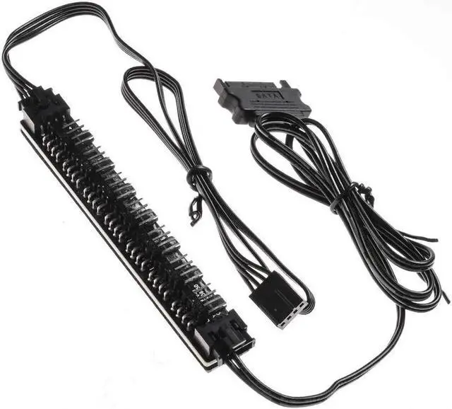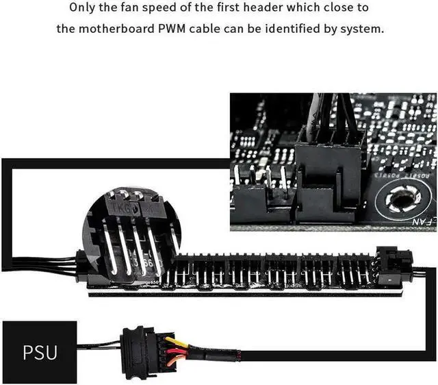 1-to-7 PWM Fan HubThe fan hub splitter can support up to 7 fans. The extension cable offers greater flexibility between motherboard and CPU cooling fans.