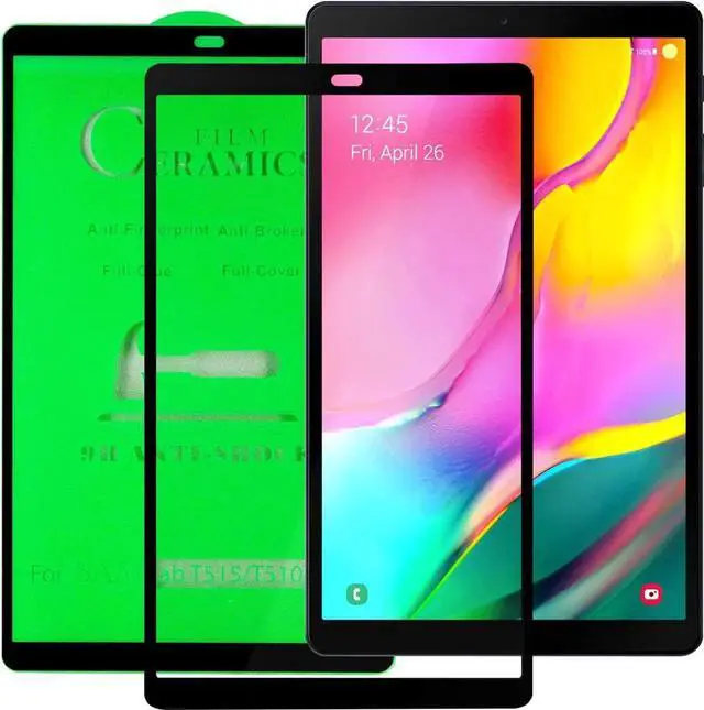 Shockproof Case Full-Body Heavy Duty Cover Stand with Shatterproof Ceramic Screen Protector for Samsung Galaxy Tab A 10.1 2019 T510 T515 (Black)
