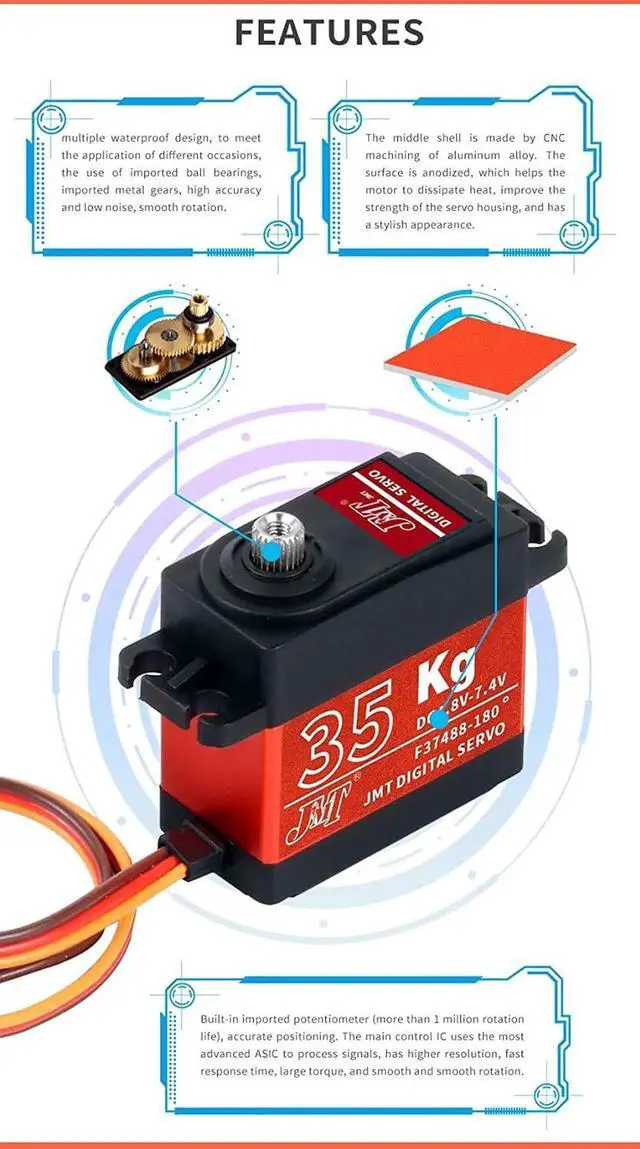 20KG 35KG Large Torque Digital Servo Waterproof Aluminium Metal Gears 25T Arm for RC Car Crawler Boat Plane (35KG 270D)