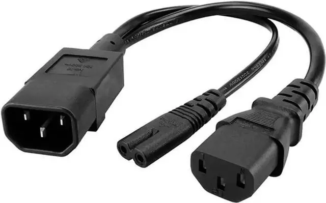 1FT C14 Male PDU Style Computer Power Extension Cable Y Splitter Power Plug Cord (C14 to C7+C13)