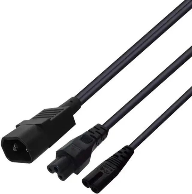 1FT C14 Male PDU Style Computer Power Extension Cable Y Splitter Power Plug Cord (C14 to C5+C7)
