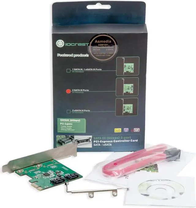 2 Port SATA III PCI-e 2.0 x1 Controller Card Asmedia ASM1061 Non-Raid with Low Profile Bracket SY-PEX40039
