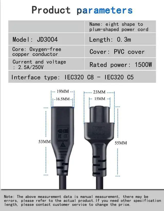 * Package includes * -- 1 x 2Pin power extension cord