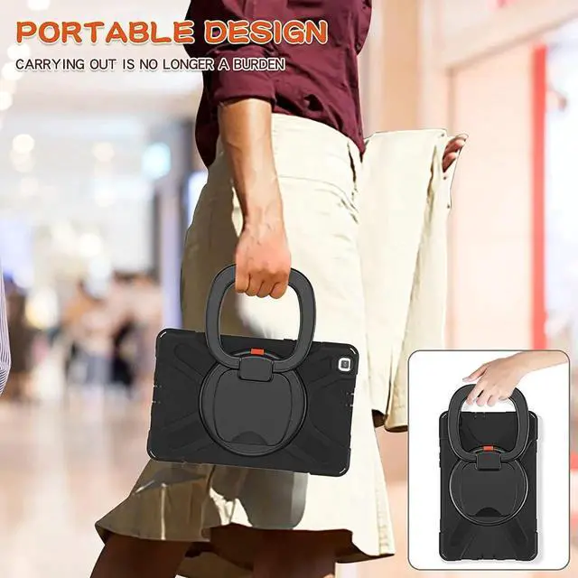 FEATURES & FUNCTIONS - The Shield case offers many features and functions that seperates this case from others. It allows you to use your device without having to remove the case such as take photos, record videos, charge or sync your tablet. Built-in stand so that you can watch videos or use apps hands-free in a comfortable viewing angle. Hand/Palm strap allows you to carry your device securely or use the included carrying shoulder strap sling which is perfect when you are traveling.