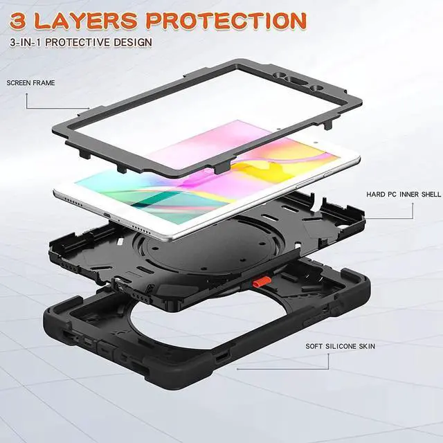 HEAVY DUTY SHIELD CASE COVER - Designed to fit the Samsung Galaxy Tab A 8.0. Specific cut-outs for the Galaxy Tab A 8.0 2019 T290/T295's charging ports, front and back camera, home button, earphone jack, and volume/power controls. This case gives you total access to your tablets features and functions such as capturing photos/videos, syncing or charging without having to remove the case. Built-in hand strap, kickstand, and includes carrying shoulder strap sling.