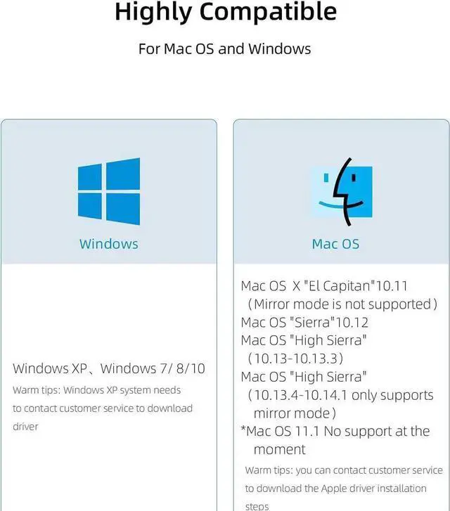 Driver Installation Needed: Please install it's internal driver while plug USB to HDMI adapter into laptop. Just double click USB driver which located in your computer's new folder and follow the steps to install. Any issue about installation or latest driver, please feel free to email us