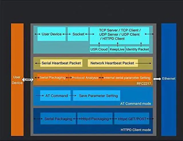 Serial & Network Heartbeat Packet: RS232 to Ethernet converters USR-TCP232-302 maintain the normal connection with the server by sending heartbeat packet regularly.