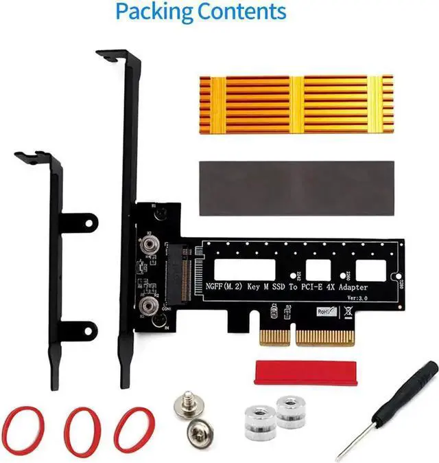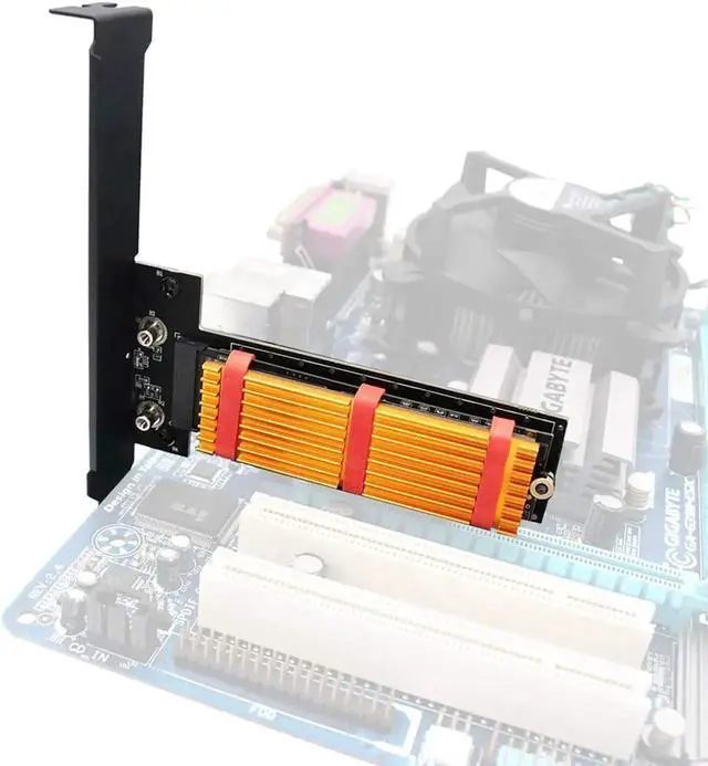 M.2 PCIe Adapter M Key M.2 NVMe SSD to PCI-e 3.0 x4 Host Controller Expansion Card with Low Profile Bracket with Advanced Heat Sink Solution for 2242 2260 2280 (with Yellow Heatsink)