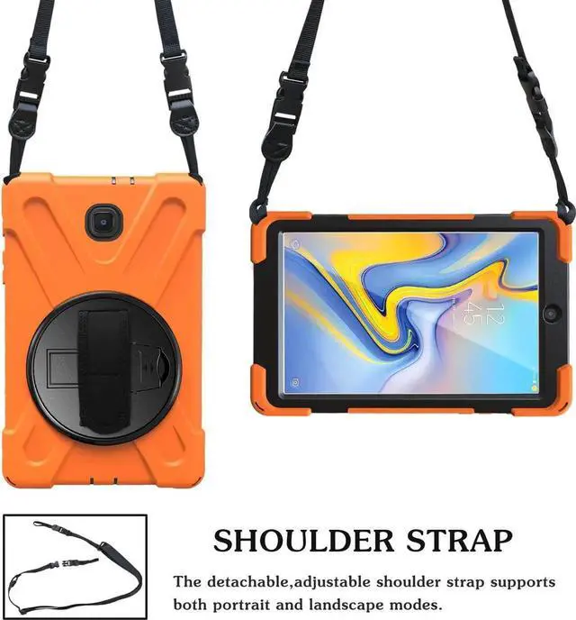 Integrated palmstrap, kickstand, & includes shoulder strap - The shield case for samsung galaxy tab a t387 cover comes with all the features you need as you use your tablet daily. The built-in kickstand (which flips out in the back of the cover) allows you to watch your favorite shows. The palmstrap allows you to have a more secured grip on your tablet. It's best feature is the shoulder strap as it allows you to carry your device easily which is a very needed feature in todays lifestyle.