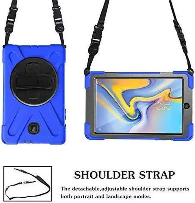 Integrated palmstrap, kickstand, & includes shoulder strap - The shield case for samsung galaxy tab a t387 cover comes with all the features you need as you use your tablet daily. The built-in kickstand (which flips out in the back of the cover) allows you to watch your favorite shows. The palmstrap allows you to have a more secured grip on your tablet. It's best feature is the shoulder strap as it allows you to carry your device easily which is a very needed feature in todays lifestyle.
