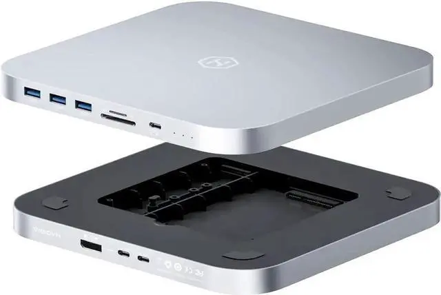 Multiple interfaces: Hagibis Mac Mini Dock with M. 2 NVMe/NGFF, 2.5 inch SATA hard drive enclosure, DP 1.4, 10Gbps USB 3.1 Gen2, 10Gbps USB-C, 2 5Gbps USB 3.0, SD/Micro SD card slot. Various interfaces meet all your needs