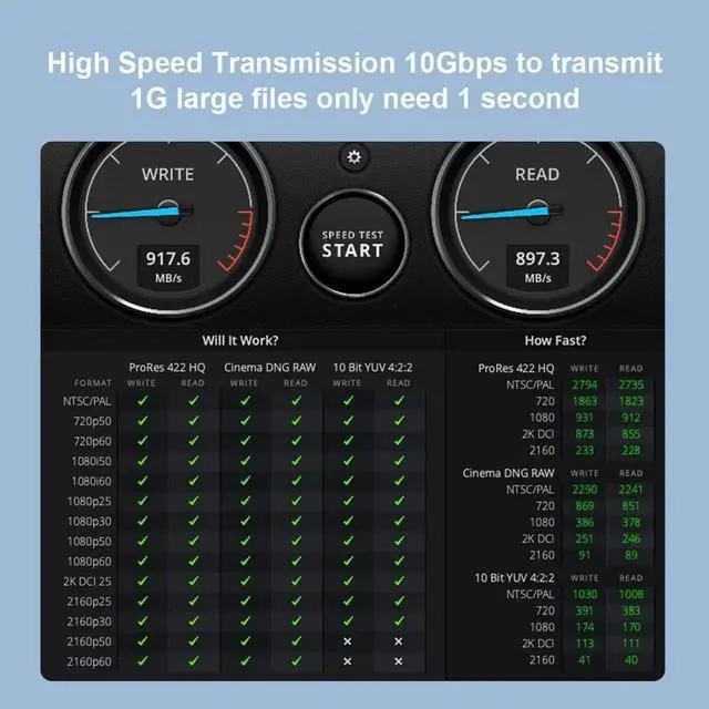 High Speed Transmission: 10Gbps to transmit 1G large files only need 1 second. *Due to the limitation of Apple M1 chip, the reading and writing speed is lower than that of non M1 chip computer