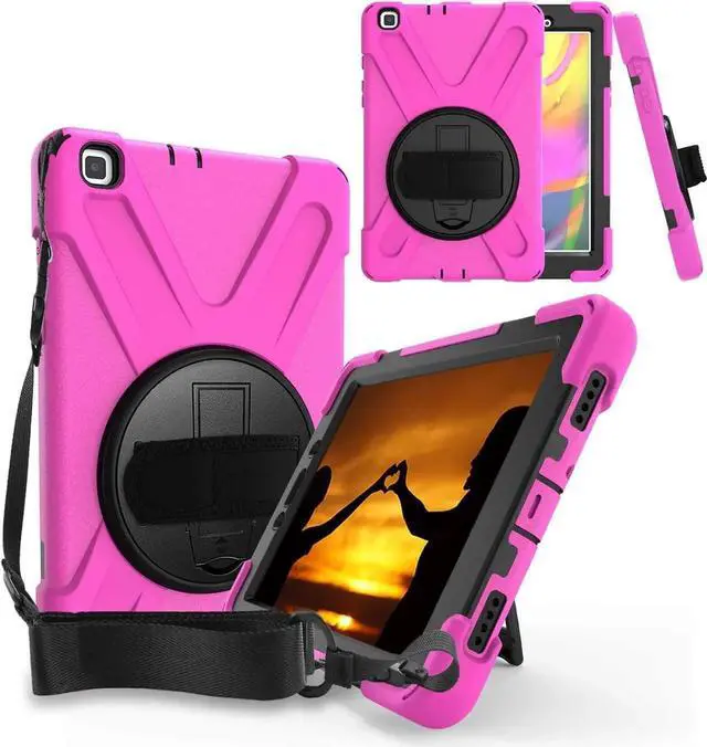 HEAVY DUTY SHIELD CASE COVER - Designed to fit the Samsung Galaxy Tab A 8.0. Specific cut-outs for the Galaxy Tab A 8.0 2019 T290/T295's charging ports, front and back camera, home button, earphone jack, and volume/power controls. This case gives you total access to your tablets features and functions such as capturing photos/videos, syncing or charging without having to remove the case. Built-in hand strap, kickstand, and includes carrying shoulder strap sling.