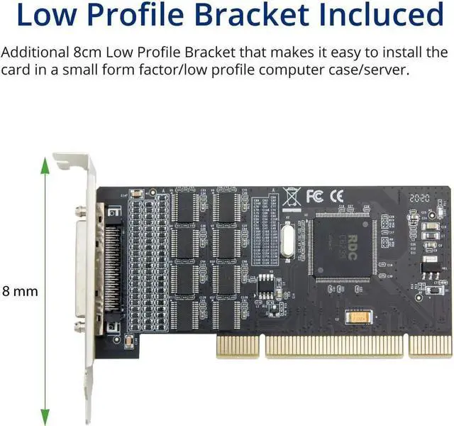 PCI Bus: PCI 32-bit 33Mhz bus interface. Compliant with PCI specification version 2.1. Support to change the serial port number