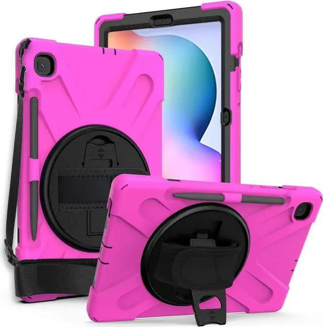 HEAVY DUTY SHIELD CASE COVER - Designed to fit the Samsung Galaxy Tab S6 Lite. Specific cut-outs for the Galaxy Tab S6 Lite 2020 P610's charging ports, front and back camera, home button, earphone jack, and volume/power controls. This case gives you total access to your tablets features and functions such as capturing photos/videos, syncing or charging without having to remove the case. Built-in hand strap, kickstand, and includes carrying shoulder strap sling.