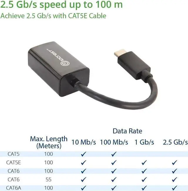 Super Speed USB-C to 2.5G RJ45 Female Ethernet adapter connects your computer, Raspberry Pi 3 or tablet to a router, modem or network switch for network connection. It adds a standard RJ45 port to your Ultrabook, notebook or Macbook for file transferring, video conferencing, gaming, and HD video streaming.