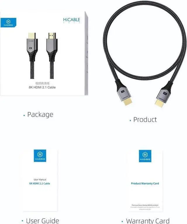 Wide Compatibility Hagibis HDMI 2.1 8K Cable perfectly compatible with Apple TV, LG TV, Samsung QLED TV, Fire TV, Roku, Playstation, Sony 8K UHD TV, Blu-Ray, Laptop, PC, DVD, PS3, PS4 Pro, PS5, Nintendo Switch, Xbox 360, Xbox one S and Wii U, Tivo, Vizio, Blu-ray player, Projector, etc. Backward compatible with earlier versions of HDMI and can be used with existing HDMI devices.