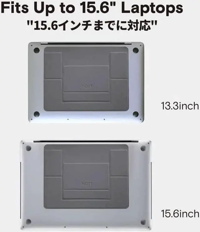 [Reliably Strong] It's built with unique PU and fiber glass materials, ensuring that it can hold a laptop stably with its small body. 18lbs is its weight bearing, covering most laptops. [Stick to the bottom of device, ensure the laptop stand is near the hinge.