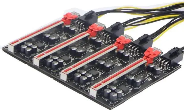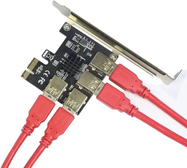 • 1-slot PCI-E 1X to 4 slot 16X riser card with high speed USB 3.0 cable,use for graphics card bitcoin mining.Plugs directly to the board without any extender cable, can be fixed to the case.