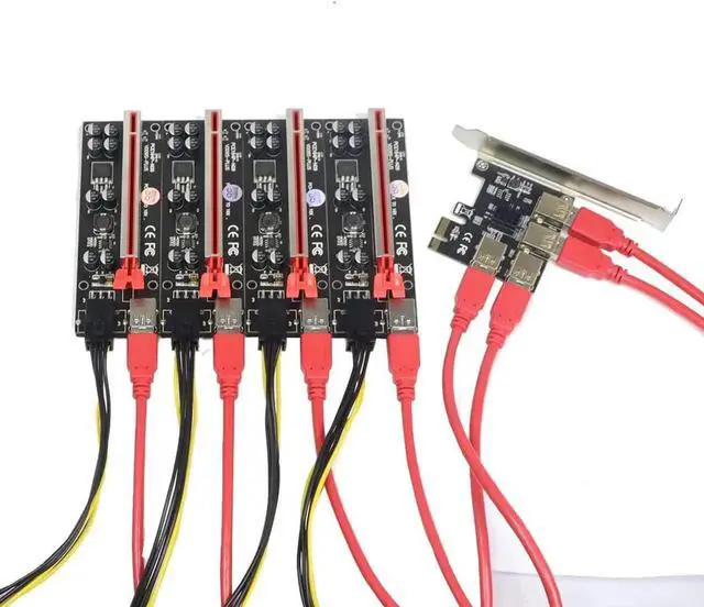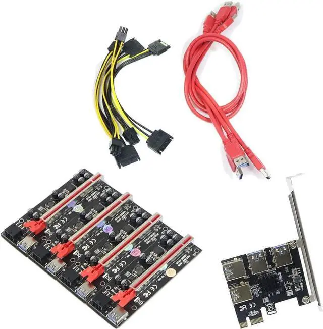 PCI-E 1x to 16x Riser Card PCI-Express 1 to 4 Slot PCIe USB3.0 Splitter 1 to 4 Adapter GPU Riser Card for BTC Bitcoin Miner Mining (PCIE 1 to 4USB Kit)
