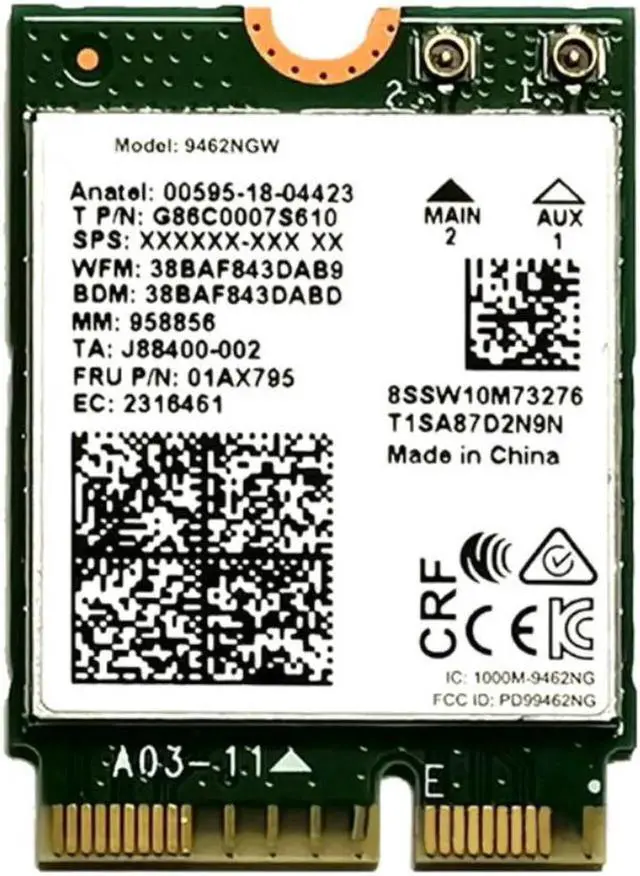 For In-tel Wireless-AC 9462 adapter is a CRF2 (Companion RF module) supporting the 1st generation integrated for In-tel wireless 802.11ac solution comprised of CNVi3 and a CRF.