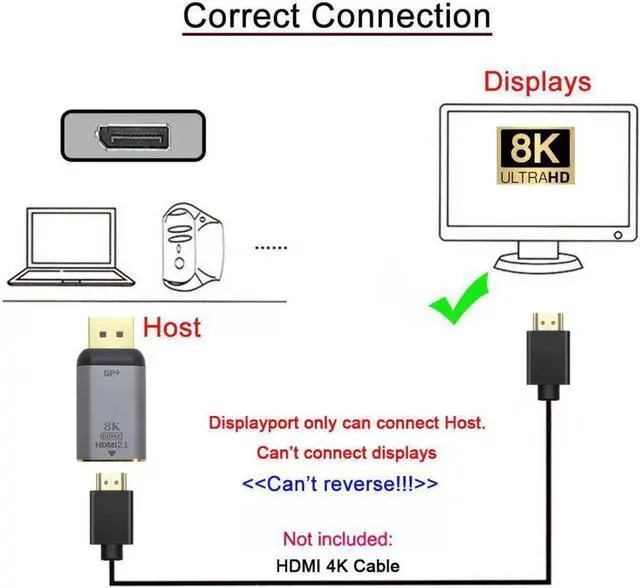 DP x HDMI adapter supports 8K@60Hz, 4K@60Hz for DisplayPort Enabled Desktops and Laptops to Connect to HDMI Displays, enjoy home theater with 8K/4K high resolution.