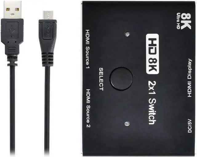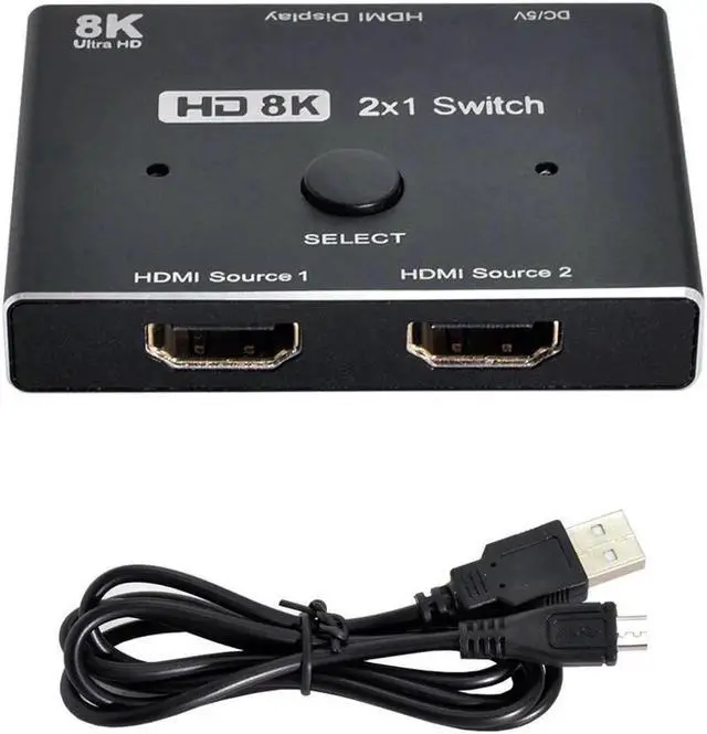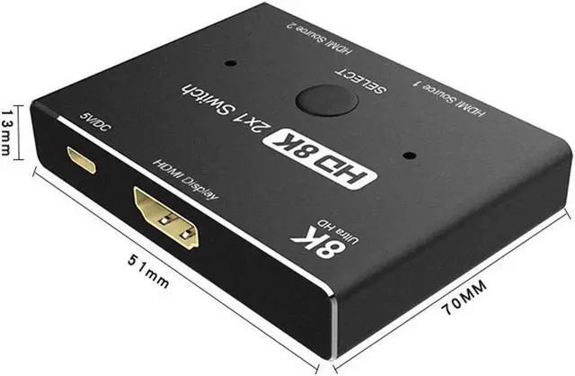 The HDMI 8K switcher allow you to connect two HDMI source to one HDMI display