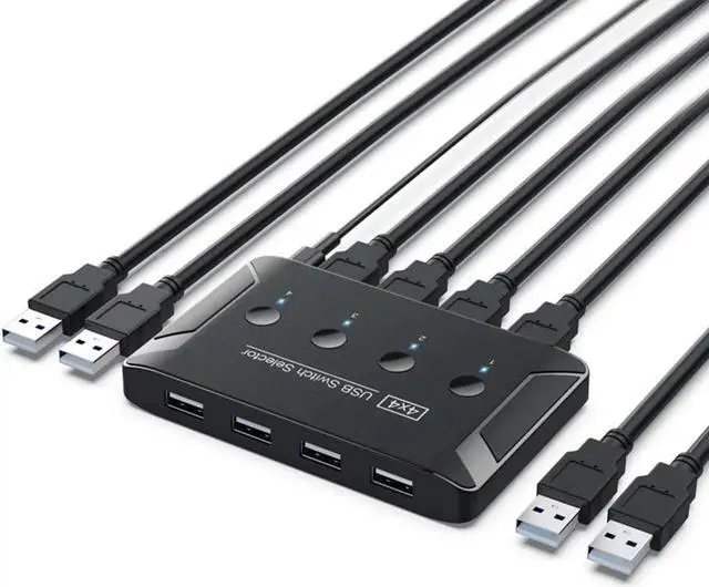 KVM USB 2.0 Switch Selector 4 Port PCs Sharing 4 Devices for Keyboard Mouse Scanner Printer