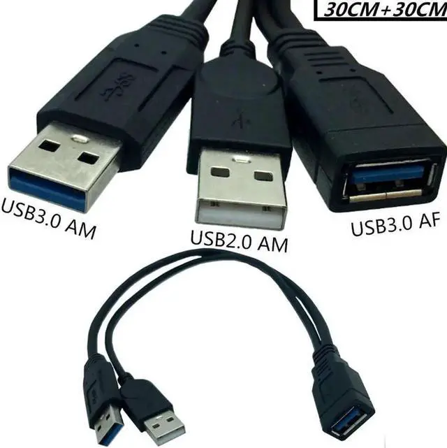 USB 3.0 extension mobile hard disk DATA cable female to 2 USB public cable strengthen the power supply