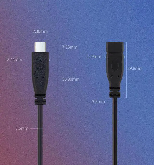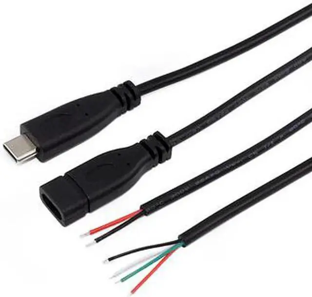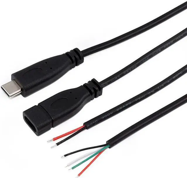 20cm Black Type-c Usb FeMale male Plug 2 4 wire Power Cable Cord stripped Maximum current 3A for Raspberry pie DIY