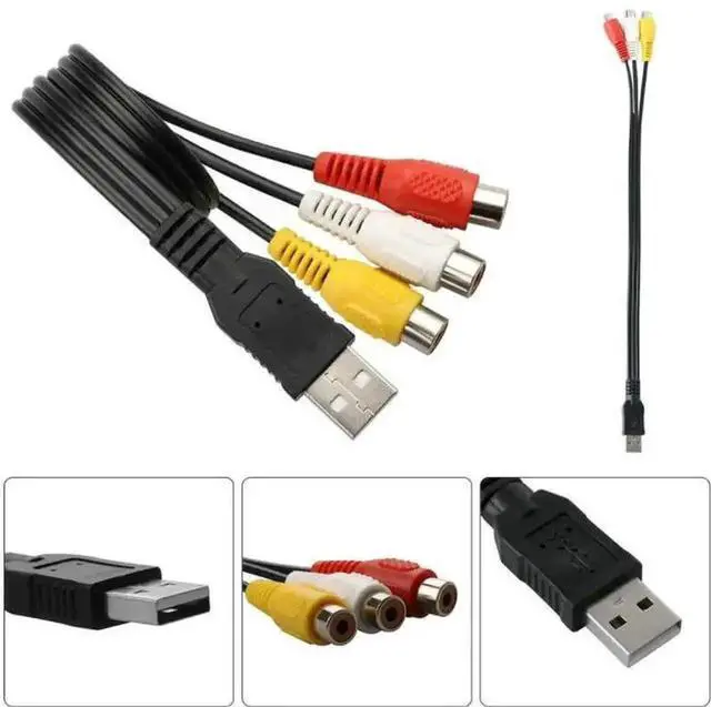USB Male to 3RCA Male AV Audio Converter Adapter Cable Cord for HDTV UK