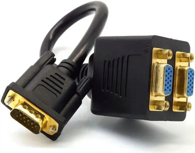 Great-Q RGB VGA SVGA Male to 2 VGA HD 15 Female Splitter Adapter Extension Cable