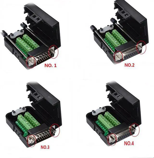 DB15 Connectors D-SUB Female Male 2 Row 15 Pin Plug Breakout Terminals Board Connector Screw Nut Type Black Plastic Cover