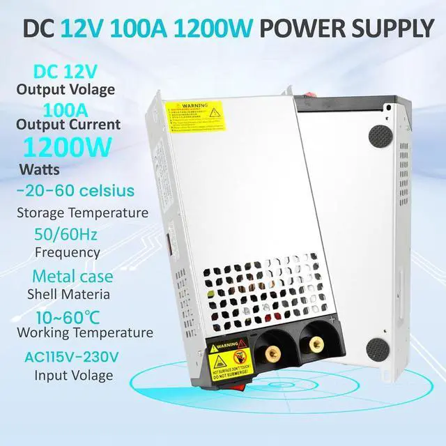 DC 12V 100A 1200W Power Supply for industrial automation equipment, radio, Amplifier, Radios, LED drive, CCTV Camera System, 3D Printer, lcd monitor, Car Stereos, water Pump and more 12V Device.