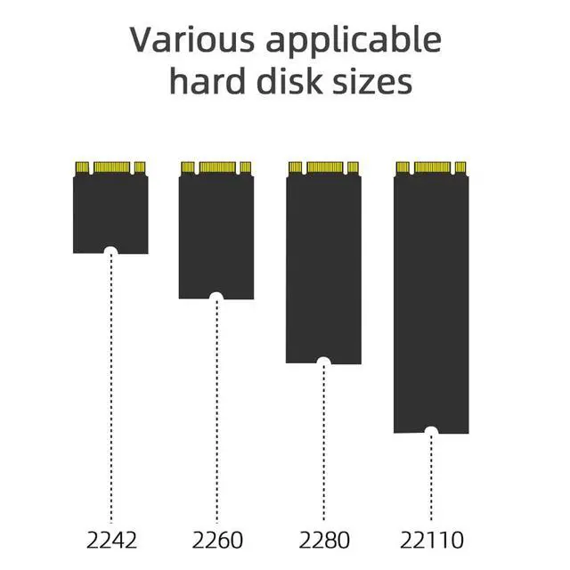 Vertical open design, more convenient to plug and unplug.Variety of applicable hard disk size specifications: 2230/2242/2260/2280/22110