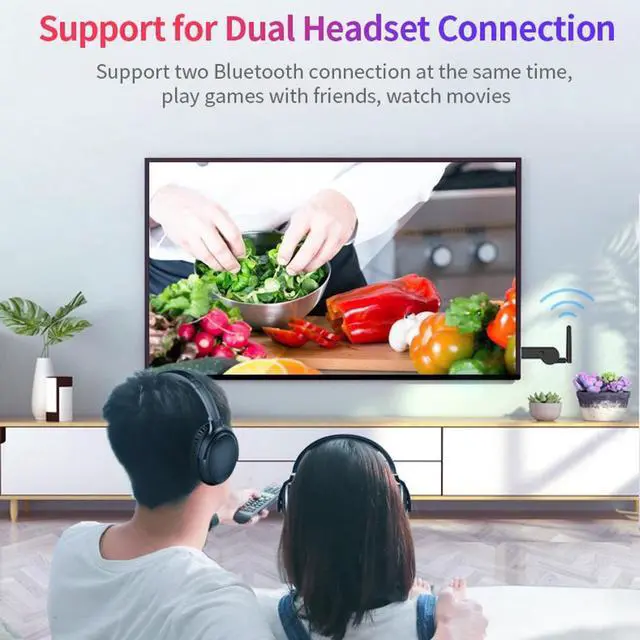 1. Insert the USB into the USB port of the TV/computer, the LED light flashes quickly, and enters the Bluetooth-compatible search state. Turn on the Bluetooth-compatible headset/Bluetooth-compatible speaker to enter the pairing state, and the product will automatically search for the connection.